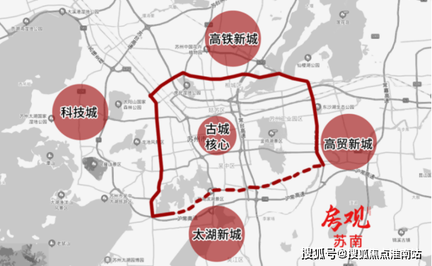 2012年,苏州首次提出“一核四城”战略布局,由此成为苏州城市发展和房地产开发的重要导向,形成苏州价值第二梯队的五大新城。