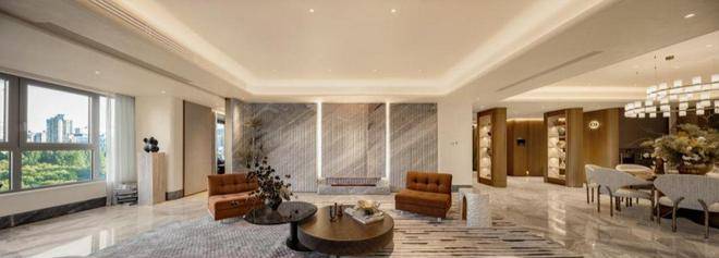 豪宅中,会所+泳池已成为市场标配,但是中兴傲舍却将之与艺术融合,把艺术变成了生活的一部分。14.5米超高挑空的归家大堂,搭配三大园景礼序和七重风雨连廊,从进门就仪式感爆棚。