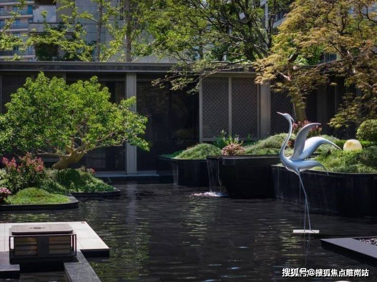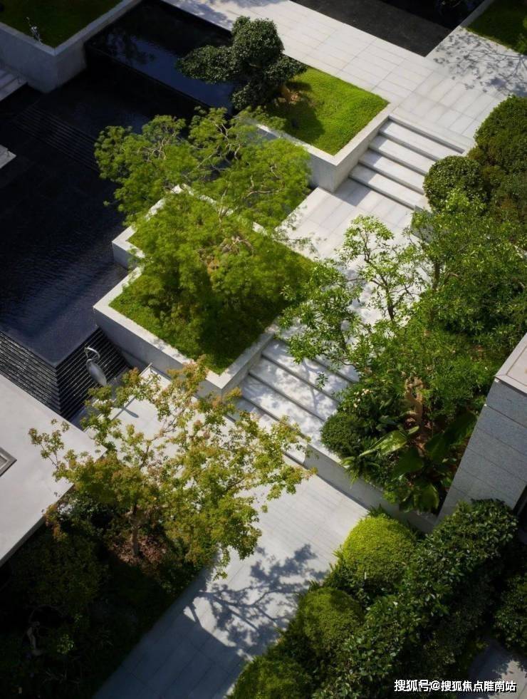 中心水院,如西湖水波,似江山如画。游廊漫回,亭台水榭,草木葳蕤,尽显东方雅韵。高层绿意疏朗,展现静谧雅致氛围;中层巧妙搭配特色树种,恣意蔓延;低层以不同花木勾勒,芬芳弥漫,营造“沉醉不知归路,误入百花深处”的美好意境,既有自然的艺术,又有生动的意趣。