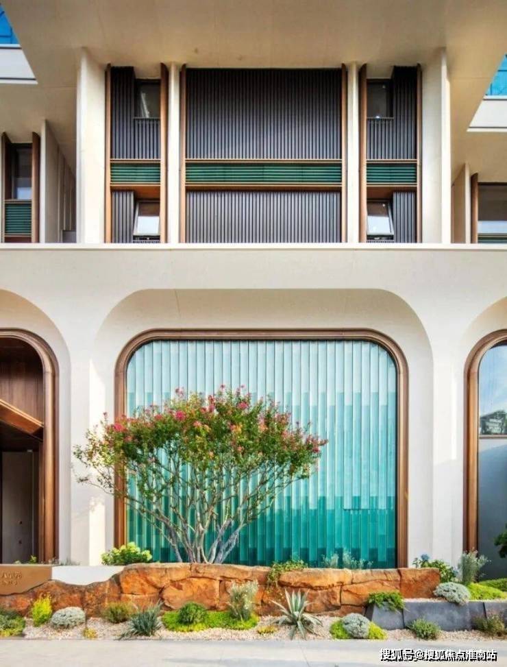 项目立面上,采用了独特的陶板+UHPC+铝板设计。相比老式豪宅的铝板,这种源自传统陶瓷工艺的材料,既能呈现自然材料的温暖肌理,又有远超铝板的耐久性与可定制性,是今天豪宅圈最in的选择。