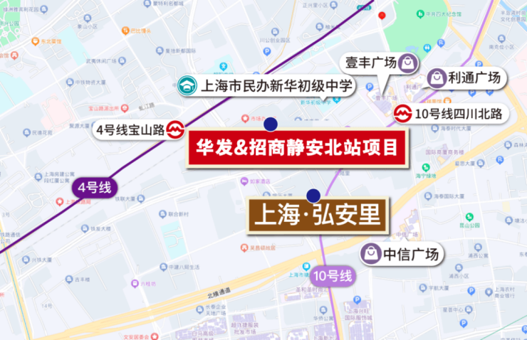 商业配套:周边有星荟中心、宝华城市广场等商业,另规划有四川北路18号街坊,作为虹口生活新地标,包含超甲级写字楼,上海约14,000㎡的文化博物馆。