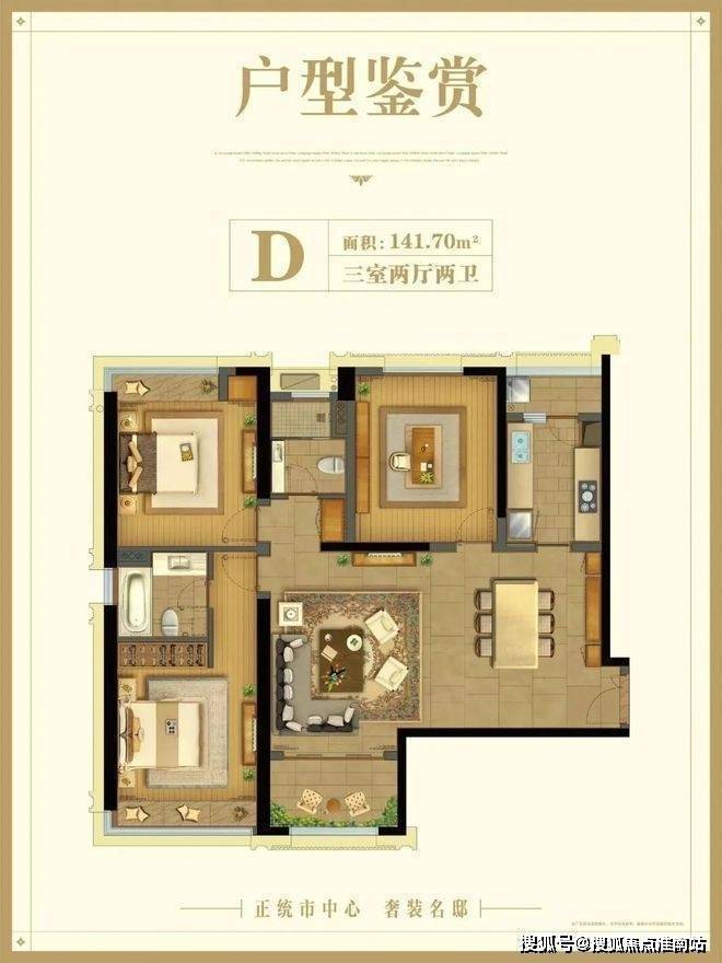 D户型:建筑面积约141.7㎡3房