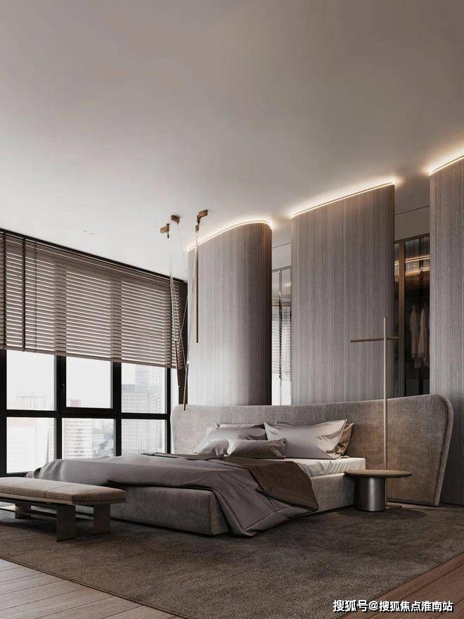 卧室空间设计得非常宽广,大面积的落地窗,给整个卧室带来了充足的光源。
