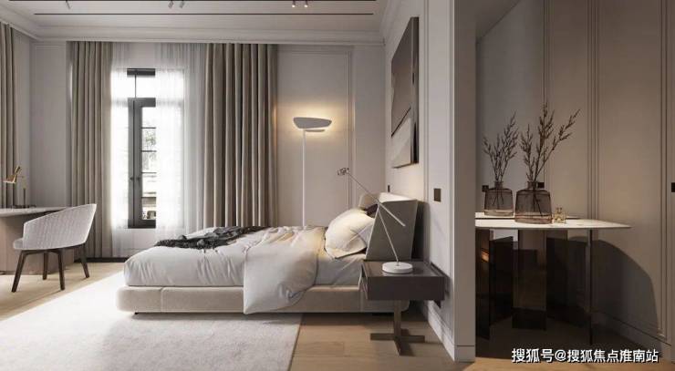 卧室的设计采用米色来增加空间的温馨感,一方面让空间看上去更加宜居,另一方面是同一种色调的家具和空间呈现出了更多的高级感,让空间看上去更加的细腻。