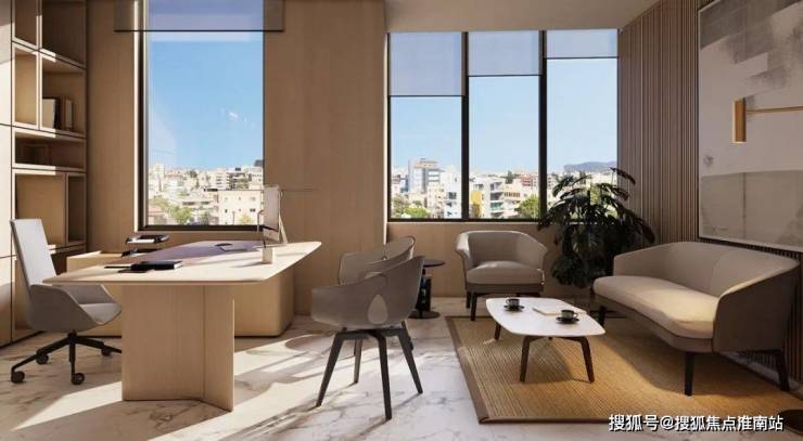 室内设计:秉承摩登东方的理念,设计以人、生活为中心,从空间本体和情感层面都回归生活,270度环幕采光,开放式会客厅设计,兼具尺度感与功能性。
