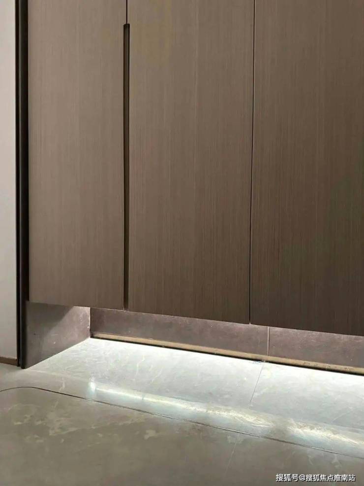 【缦云上海】售楼处电话☎:400-9966-224✔✔看房请务必致电与销售确认时间,避免空跑鞋柜下方做了悬浮处理,同样也是内嵌灯带,这里灯光的角度还会再调整,因为灯光映射在大理石地面上,要显得尽量柔和不刺眼;同时,鞋柜下方可放拖鞋,还能放扫地机器人,便于日常清扫打理。