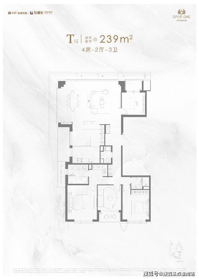 ⑤OPUS ONE 500空中行宫:4+1房&双豪华套房规制、2梯1户超大专属电梯厅、超大宴会厅、5个阳台、独立内玄关、阳台、起居厅、步入式衣帽间、双台盆浴缸卫生间、灵活X空间;保利世博天悦售楼处电话:400-8818-994