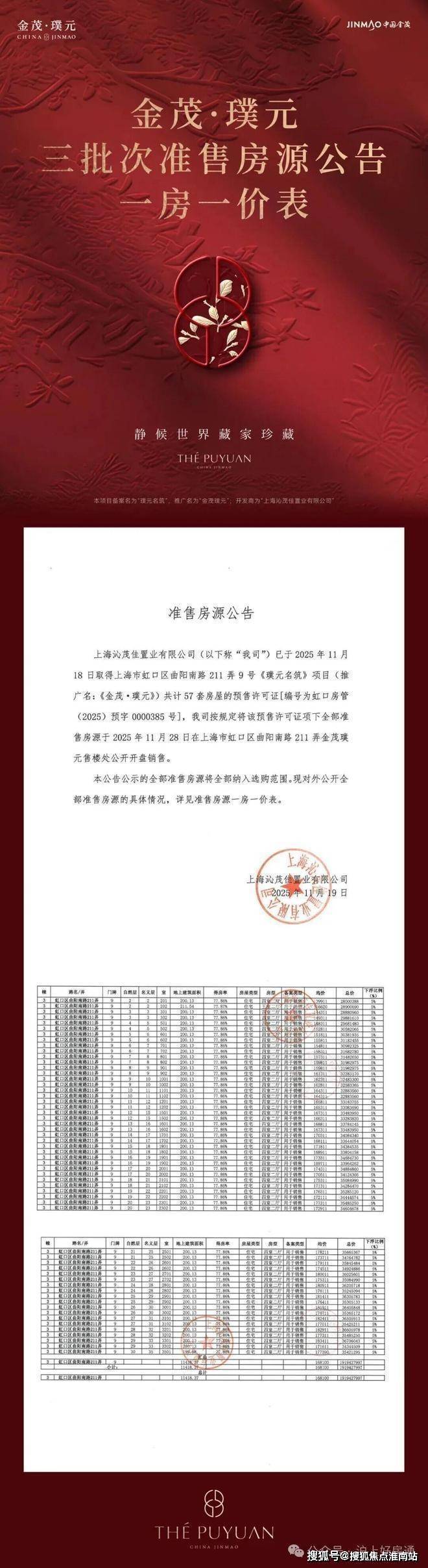 金茂璞元一房一价表: