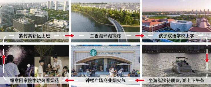 兰香湖生态社区的独特性,不止优质住宅的打造。它依托紫竹水利风景区的稀缺生态资源,占据产业、生态、教育、高端住宅“四大高地”,并在“四高优势”中,将湖岸生活美学与未来居住方式深度融合。