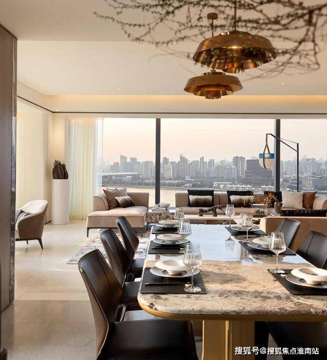 客餐厨顺势衔接、浑然一体,无一丝多余设计,美好生活的理想画卷徐徐展开。窗外高楼林立映江景,涛声阵阵入庭来,在这天然背景中,我们化身生活的主宰,肆意挥洒灵动笔触,为日常添彩。