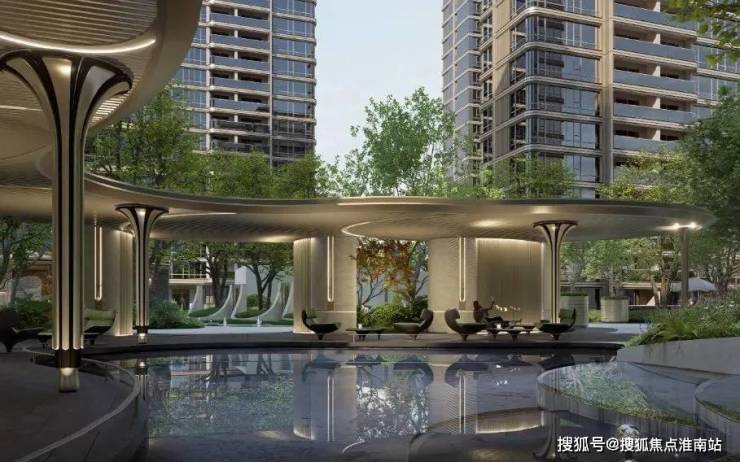 它也采用多见于豪宅新盘的 风雨连廊,打造风雨无阻的归家体验的同时。风雨连廊的造型与景观巧妙呼应,别有意趣。