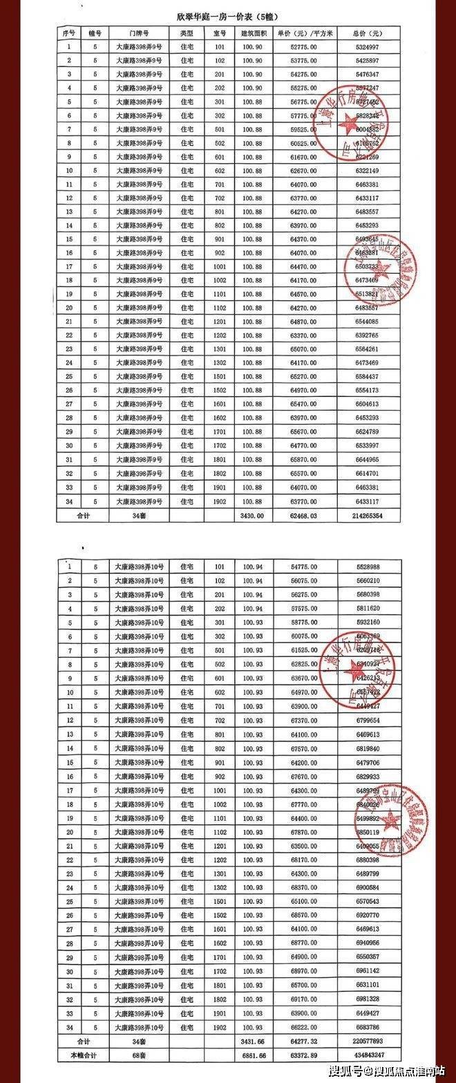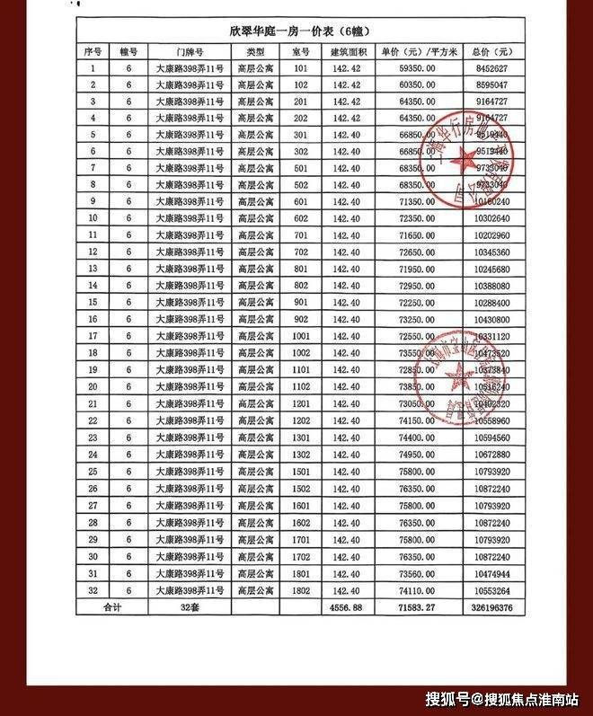 完整一房一价表如下: