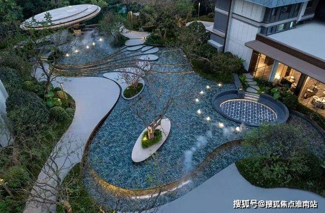 庭院由4处归家通道、8扇造型屏风和1座水景雕塑的一体化设计打造而成。