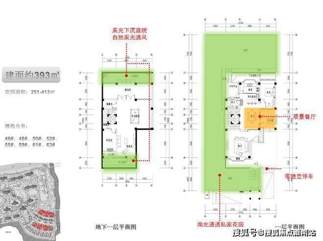 双拼别墅花园全赠送,产品为建面约393㎡的双拼别墅,花园面积251-413㎡,建面约636㎡的独栋别墅,花园面积约438-445㎡