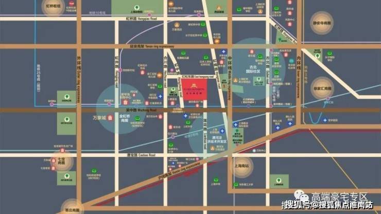 交通方面:项目地处长宁、徐汇、闵行三区交汇的金虹桥板块的核心区位,拥有多维立体的交通,延安高架、中环线、外环线环伺。临近已运行的轨交9号线合川路站、10号线龙溪路站,规划待建的25号线虹桥镇站,三站可达徐家汇。
