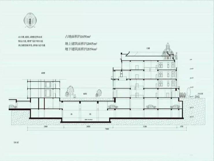 楼层总高:地上4层 + 地下2层,主楼4.5米层高,大堂挑高约18米,地下空间局部挑高约8米
