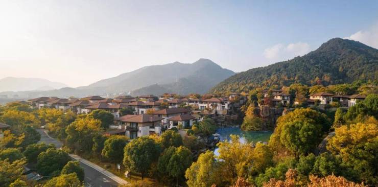 建筑设计尊重山形地貌,采用低矮的建筑体量与山体呼应,从传统建筑中汲取营养,采用现代手法打造属于富春江畔的自然生长的建筑形象,同时结合地形,通过多重院的形式塑造新的山居生活体验。