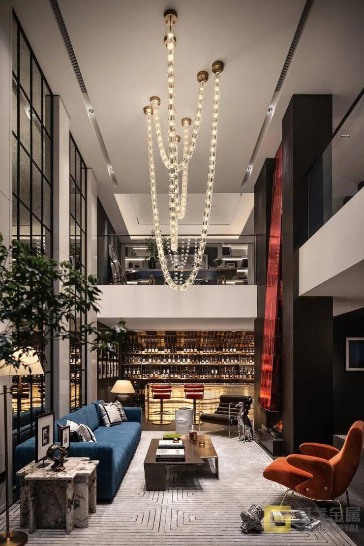 夸张的还有层高,一层约3.6米,二层也有约3.2米,主卧的穹顶最高处更是达到了4.8米,配上大屏落地窗,气场十足。