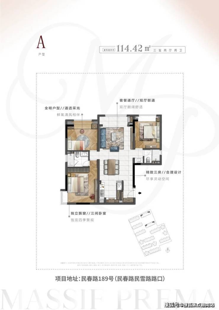 精致三房:合理设计,尽享灵动空间全明户型:通透采光,鲜氧清风相伴独立飘窗:三间卧室,饱览四季景观客餐通厅:双厅联通,双厅朗阔舒适面积约130.37㎡4室2厅2卫▼