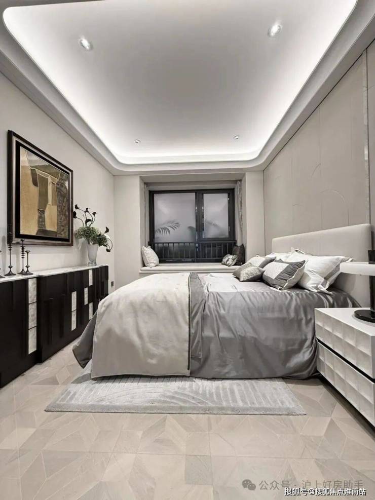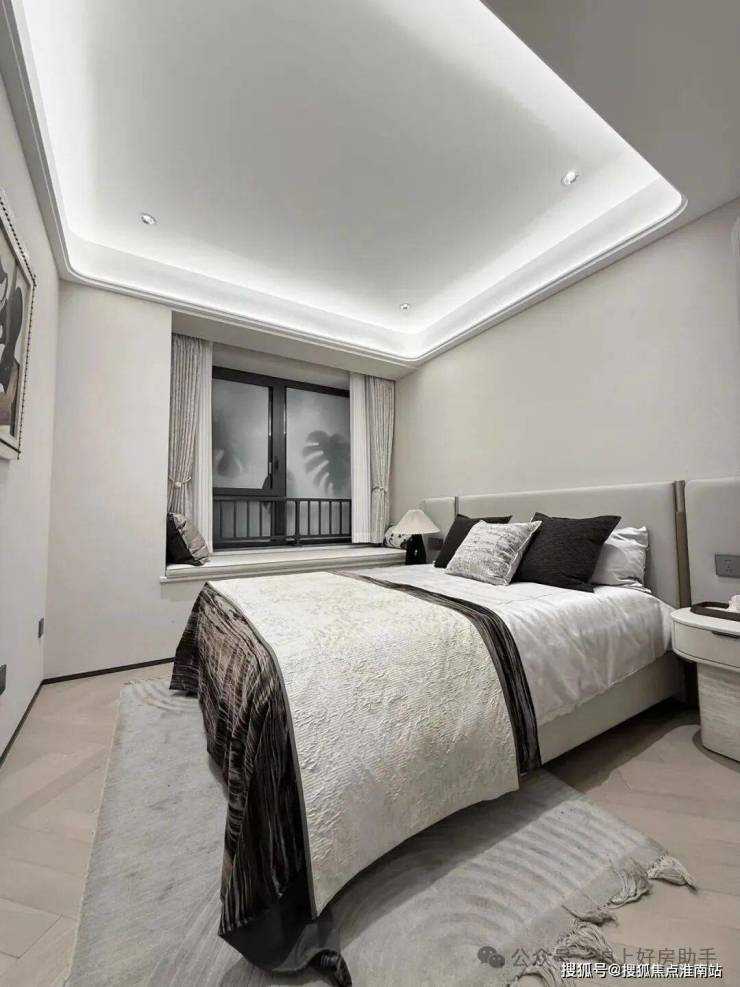电视背景墙采用卡慕白的石材+皮革造型,弧形吊顶,相当讲究,连空调出风口的形状都打造为海上·清和玺logo山茶花的形状~~三大件为大金(或同等档次)中央空调和地暖,新风系统为百朗(或同等档次),南向阔景阳台,采光视野一级棒!