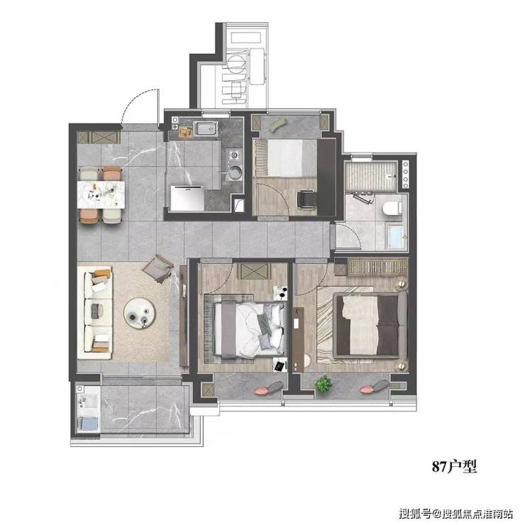 建面约87㎡3房2厅1卫