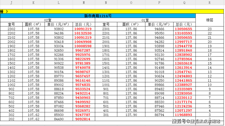 最新一房一价表: