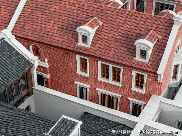 相比早期石库门里弄的小青瓦,北侧大宅组团的红色机平瓦双坡屋顶,融合中西建筑美学的经典,体现了石库门演变的脉络,还原了海派石库门的“第五立面“。