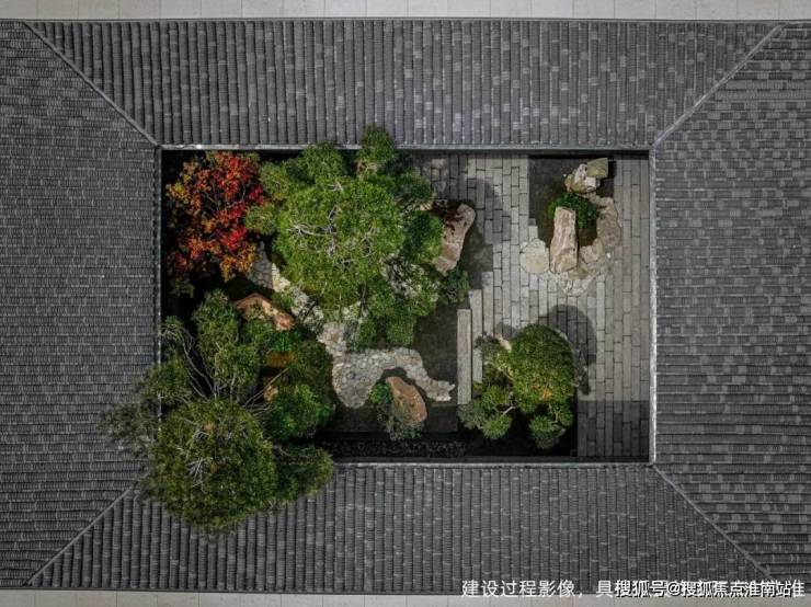 从北侧的过街门楼归家,脚步踏入四合形制的「樾下雅集」院落,"泗水归堂"的格局将江南园林的意境娓娓道来,四坡屋顶的雨水沿着精心设计的排水系统汇聚天井,暗合"四水归明堂"的吉祥寓意。檐下的构造细节更显匠心:传统"压七露三"的瓦片铺设古法搭配钛锌板防水系统。