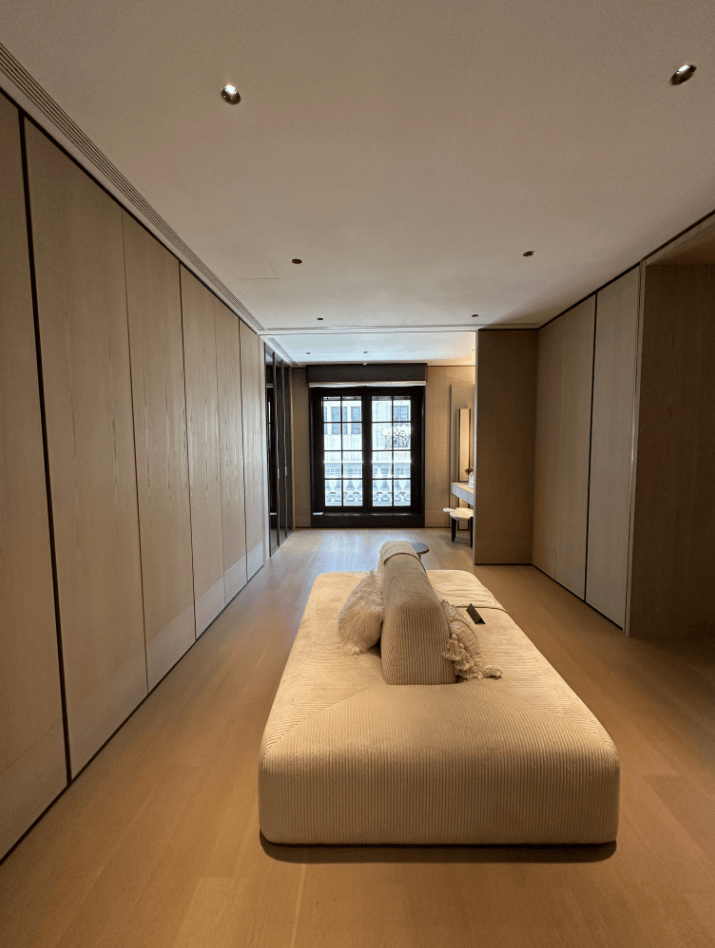 三楼整层为主卧套房, 样板间设计了双开门入卧室,进入起居空间,样板间选择在这里放一些艺术装饰、设计吧台来彰显主人品味。