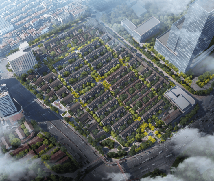 由于项目 “历史风貌街区” 的特殊属性,区域将沿袭 “总弄-支弄” 的里弄风貌肌理,现有的历史建筑实施“留改拆”方式,可采用规划保留或拆除复建方式予以更新,建筑立面不宜改变,保留历史特色构建。