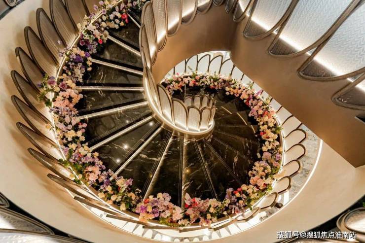 摩登旋转楼梯。楼梯已经贴上了定制的叶片状玻璃栏杆,朦朦胧胧的透光感,将会所旋梯的审美力,又拉上一个全新的高度。保利海上瑧悦售楼处电话:400-891-9910✔✔✔(已认证)