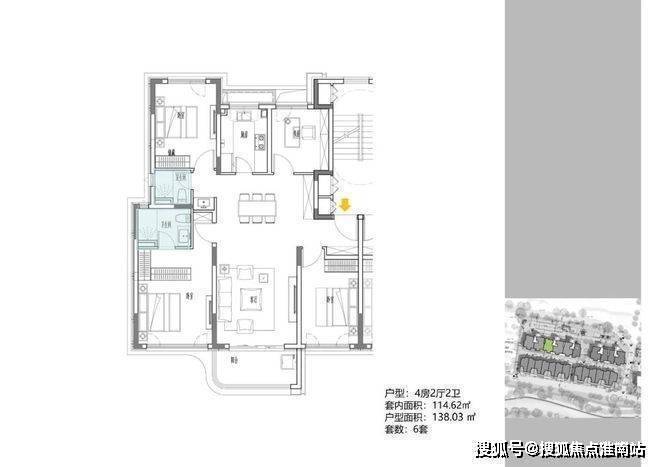 3地块容积率2.33,由一栋18层的小高层和两栋6层的花园洋房组成,共92套房源,产品建面约108-196㎡.