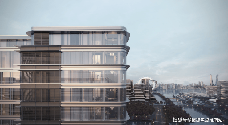 “游艇”造型辅以流动的水波立面 舒展的横向线条,圆润的转角处理 彰显钱江新城和江河汇的华贵气质 让建筑,仿佛原本就应该出现在此。