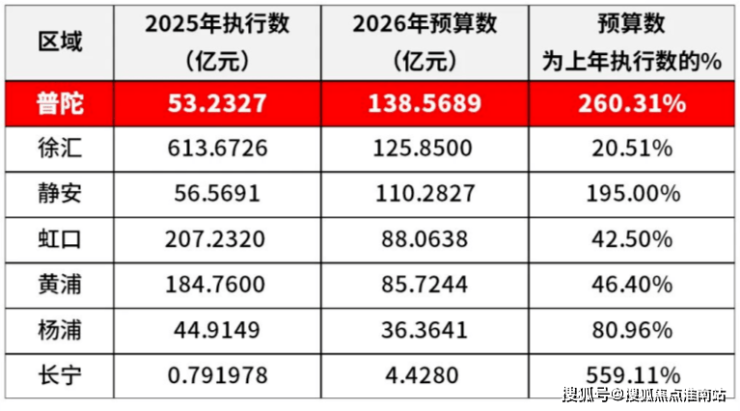 其次,2026年普陀拆迁与征地补偿预算高达约138亿,全市最高。真金白银投入之下,普陀城市界面、市政配套将迎来新一轮大幅升级,区域发展全面提速。