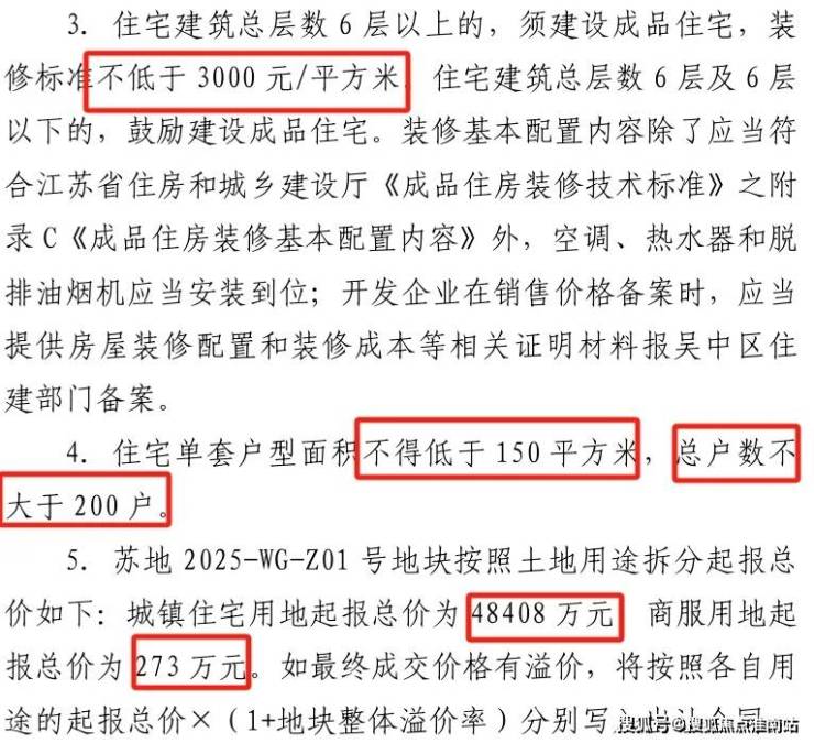 根据出让要求,300㎡≤商业建筑面积≤500㎡,住宅总层数6层以上的需装修交付,装标不低于3000元/㎡,总户数不大于200户。