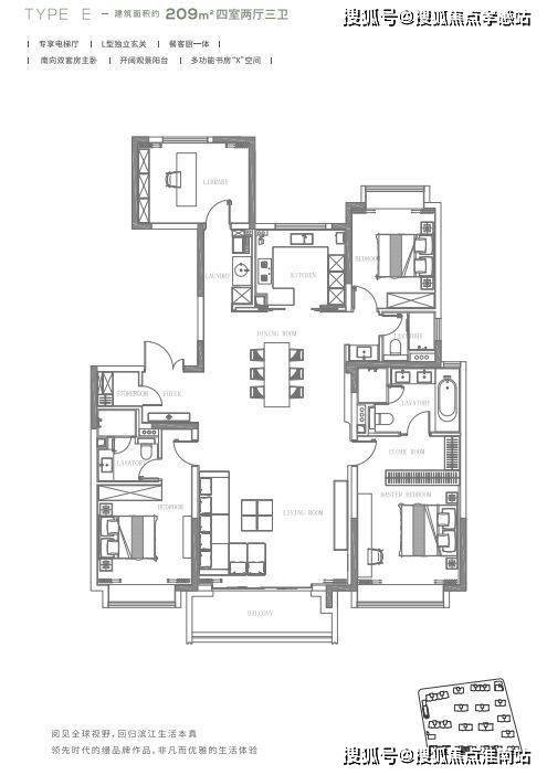 这是项目收官之作,推出的2栋楼,分别是12、16小高层,位于小区第一排,景观视野佳,俯瞰风貌别墅区。尤其是209㎡四叶草格局的王炸户型,独立电梯厅、国际一线精装、双会所、约3.5万方园林景观、无边际服务、自带约10万方合生汇商场配套,约500米一线临江。