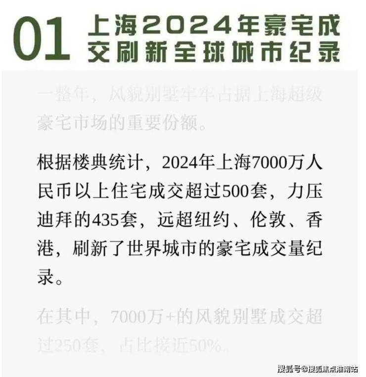 2024年上海总价7000万以上的超级豪宅成交量不仅创下历史新高,而且在全球力压伦敦、纽约、迪拜排在全球第一。
