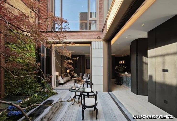 在稀贵的场地内,项目在空间规划时选择主动拔掉一栋楼来造园,作为整个项目透气的“眼”;在此基础上,又往下深挖三层,创造出空间丰富的垂直山水庭院,围绕这个庭院又布置了层层递进的配套会所体系,打造出繁华闹市中的桃花源。