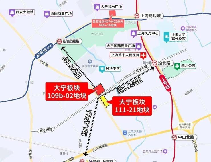 生态休闲:地块北侧约1公里是大宁公园,东侧约1.3公里是闸北公园;还有上海马戏城、大宁剧院、静安体育中心等休闲场所。