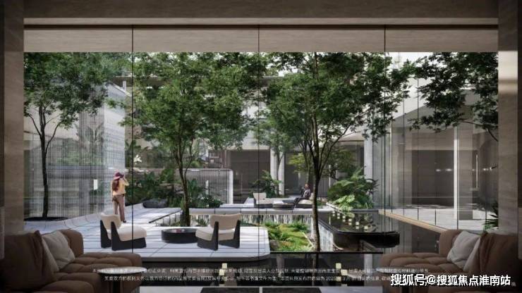 双轴线的设计,充分拓宽了视野面与观赏点位,环形回廊、精神游廊与下沉庭院通过立体景观平台相融,又创造出隔岸听泉的诗意场景。在每个重要生活触点,业主都能拥享独特景观和欣赏视野。
