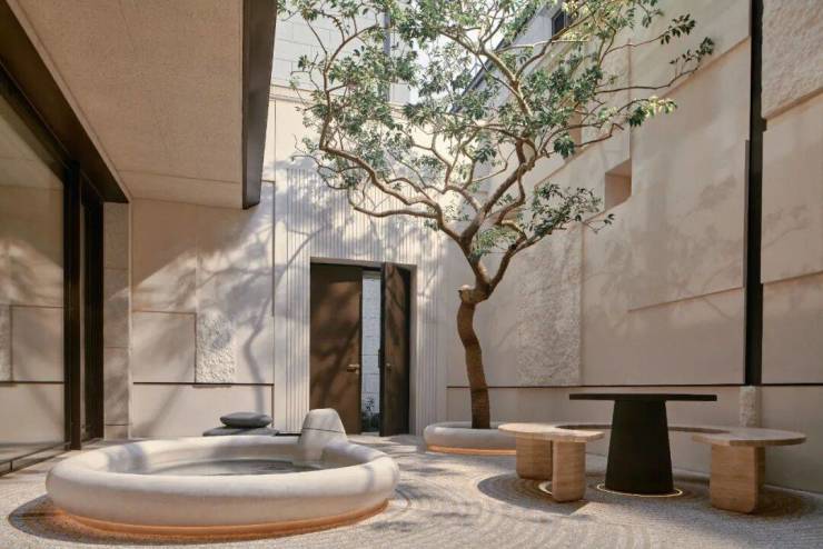 从闹市中步入狭长小径,及至打开自家院落大门,一方庭院映入眼帘,在寸土寸金的闹市中显得弥足珍贵。一汪极简主义的泉流成为点睛之笔,它如许清澈,如许淡然,也如许神秘,抚平都市喧嚣带来宁静,接通人与自然、与宇宙相连的隐秘轨道。