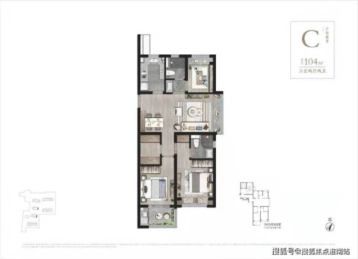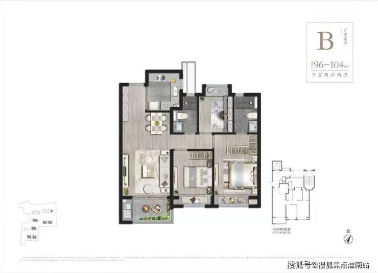 建筑面积约:96-104㎡3房