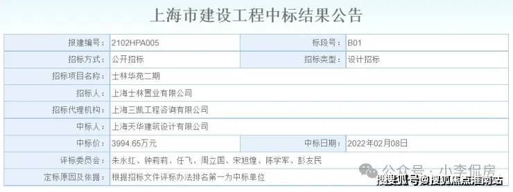 2022年2月8日,上海天华建筑设计有限公司以3994.65万元中标士林华苑二期地块设计项目!