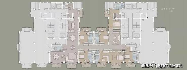 以2号楼为例 总高39层;实际住宅36层;1栋楼分2个单元 每个单元2梯2户;每两个楼层2个单元共6户大宅,370㎡平层(两个楼层2个单元共4套),680㎡复式(两个楼层2个单元共2套)另传最终交付时候可能会有户型定制