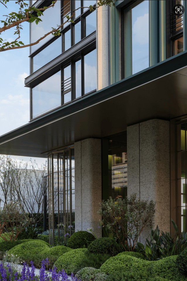 最后讲讲项目的建筑立面,它采用了 爱马仕同款博斯普鲁斯绿, 这种绿色在中国古文化里面名为 黛青色, 很好地承接了南翔这个板块的 文化底蕴。