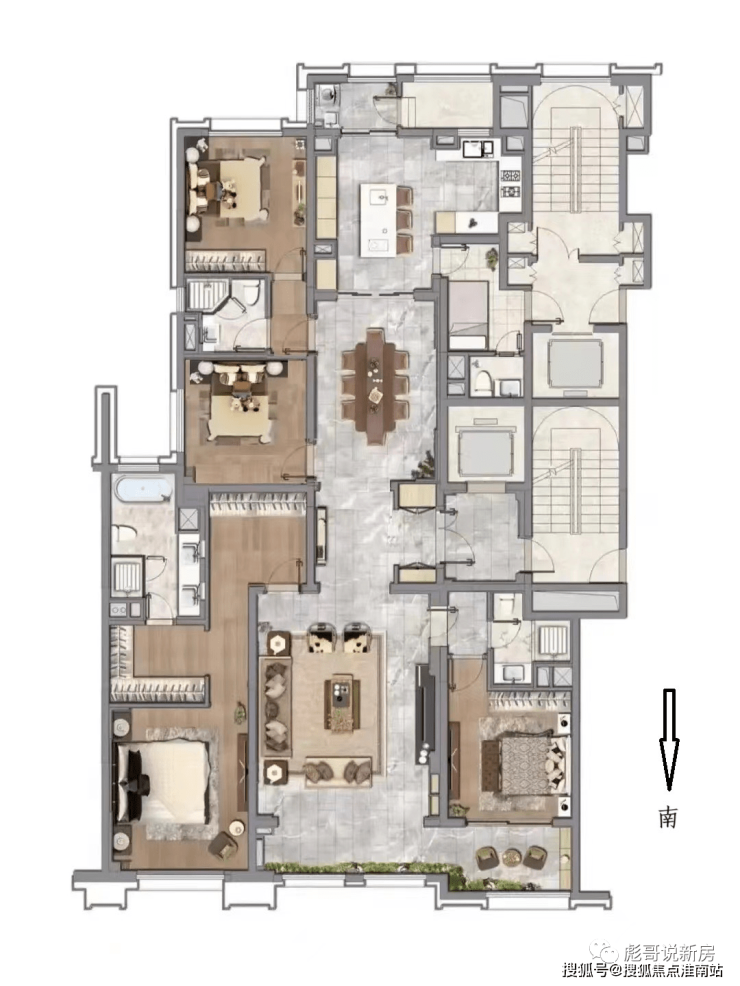 小区一共442户,1-10号楼均为面积纯300平左右的次新顶级大平层,主力户型为290平左右的4房,329平的4房,还有334/347平的4房,均为独梯独户,带独立的保姆套房,3梯2户私密性佳。