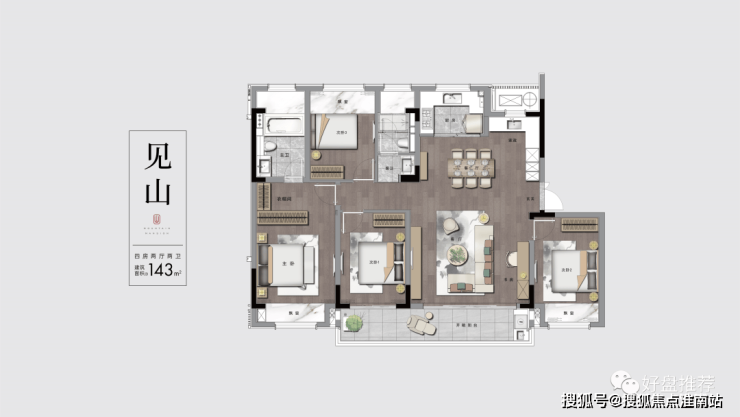 项目建筑风格传承苏式的江南人居特色,饰以典雅灰的立面颜色,街巷相应、园邻相生。以现代手法演绎,汲取苏州园林精粹,构筑“一轴六庭八景”,呈现匍匐在绵延山麓的四季姑苏的居住情景
