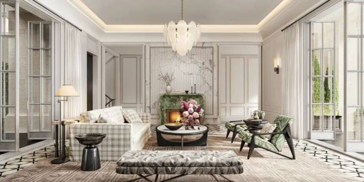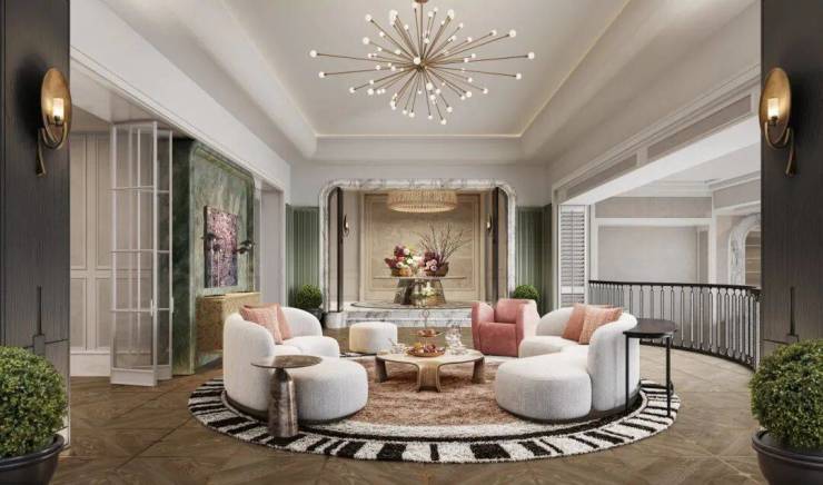 设计传承法式浪漫精髓:对称布局与经典比例展现宫廷美学;浅色大理石与丝绒材质在自然光影中呈现细腻层次;精致线脚与弧形门廊勾勒空间轮廓,水晶灯饰与艺术陈设点缀其间。整体以现代手法诠释法式优雅,在仪式感与舒适性间取得完美平衡,打造兼具艺术性与生活温度的理想居所。