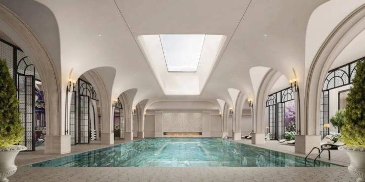 高配园区配套:三大会所(含 1500㎡地下会客厅、8.2 米挑空恒温泳池、亲子泳池综合体、多功能球场)、200 米法式柱廊、“恒庐十二景” 园林