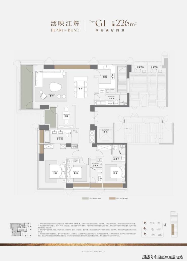美学立面,中段以浪白与夕阳金游艇舱勾勒出270°江景画框,下段石材柱廊则向上生长出ART-DECO经典线条。
